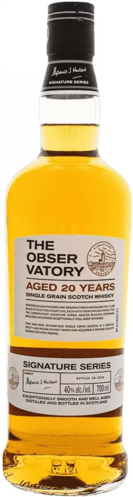 The Observatory, Single Grain, 20 Years Old — однозерновой шотландский виски, результат работы Стефани Маклауд, которая является мастер-блендером John Dewar and Sons (Bacardi Group). Она первая женщина, получившая награду "Whisky of the Year" в 2020 году, а также дважды титул "Master Blender of the Year". Своим названием виски отдает дань уважения многочисленным шотландским маякам вдоль береговой линии протяженностью более 16 км. Дистилляция проводилась на винокурне Macduff, которую можно найти в тени маяка Macduff. Виски выдерживался не менее 20 лет в бочках из-под бурбона и хереса, что наделило его богатым ароматом, и был бутилирован в 2018 году.