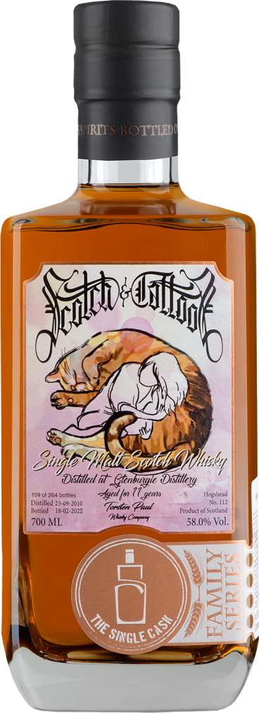 The Single Cask, "Scotch & Tattoos" Glenburgie Cask №112, 11 Years Old — односолодовый виски, обладающий щедрым ароматом и насыщенным вкусом. Спирты были дистиллированы на винокурне Гленберджи 23 сентября 2010 года, а выдержка в течение 11 лет проходила в бочке №112. Бутилирование при бочковой крепости 58% прошло 18 февраля 2022 года. Виски прекрасен в чистом виде в качестве дижестива, а также с добавлением воды, льда или в составе коктейлей. Всего было выпущено 264 бутылки виски, каждая бутылка пронумерована.
