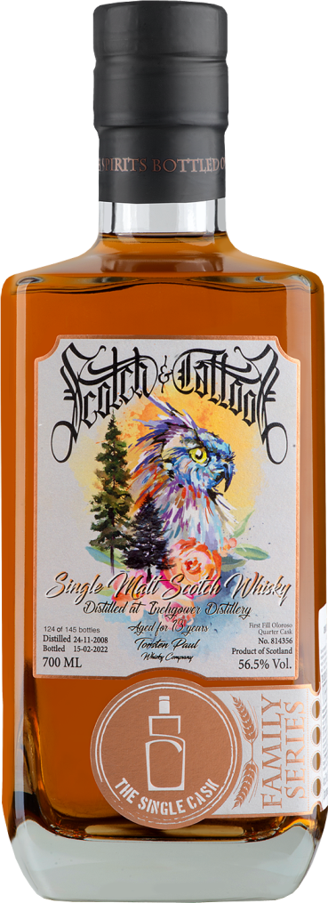 The Single Cask, "Scotch & Tattoos" Inchgower Cask № 814356, 13 Years Old — односолодовый виски, обладающий щедрым ароматом и насыщенным вкусом. Спирты были дистиллированы на винокурне Инчговер 28 ноября 2008 года, а выдержка в течение 13 лет проходила в хогсхеде из-под хереса Олоросо №314939. Бутилирование при бочковой крепости 56,5% прошло 15 февраля 2022 года. Виски прекрасен в чистом виде в качестве дижестива, а также с добавлением воды, льда или в составе коктейлей. Всего было выпущено 145 бутылок виски, каждая бутылка пронумерована.