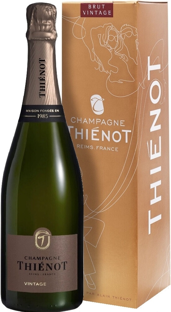 Thienot, Vintage — роскошное кюве знаменитого Дома Champagne Thienot, принадлежащего известному магнату Алену Тьено. В его производстве используется виноград сортов Пино Нуар, Шардоне и Пино Менье, из них 45% собирается на участках Премье Крю и 19% — Гран Крю. Благодаря большой заботе о винограде и методу струйной обработки, который компания использует уже 10 лет и в котором была пионером, в винах очень мало сульфатов. Сбор урожая проводится исключительно вручную в момент оптимальной спелости ягод, на винодельне плоды подвергаются прессованию с последующей ферментацией и 100% яблочно-молочным брожением, проходящими в стальных резервуарах со строгим температурным контролем. В мае 2016 года был добавлен тиражный ликер и вино разлили в бутылки для вторичной ферментации. Выдержка на осадке длилась 7 лет. После дегоржажа был добавлен дозажный ликер в количестве 6 г/л.