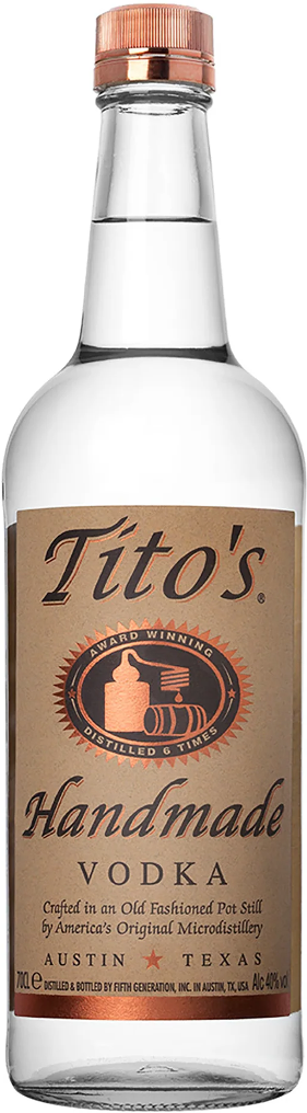 Tito's, Handmade Vodka — первая в мире крафтовая водка ручной работы, которая производится в Остине на одной из самых старых винокурен в Техасе. Она подвергается микроперегонке в старых кубах, как обычно это происходит с односолодовым шотландским виски или французским коньяком. Этот процесс довольно трудоемкий и длительный, но он позволяет получить водку, очищенную от фенолов, сложных эфиров, органических кислот. "Тито'с" изготавливается из кукурузы и не содержит глютена. Водка является отличным дижестивом, а также прекрасно подойдет для приготовления различных коктейлей.