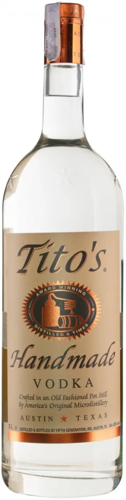 Tito's, Handmade Vodka — первая в мире крафтовая водка ручной работы, которая производится в Остине на одной из самых старых винокурен в Техасе. Она подвергается микроперегонке в старых кубах, как обычно это происходит с односолодовым шотландским виски или французским коньяком. Этот процесс довольно трудоемкий и длительный, но он позволяет получить водку, очищенную от фенолов, сложных эфиров, органических кислот. "Тито'с" изготавливается из кукурузы и не содержит глютена. Водка является отличным дижестивом, а также прекрасно подойдет для приготовления различных коктейлей.