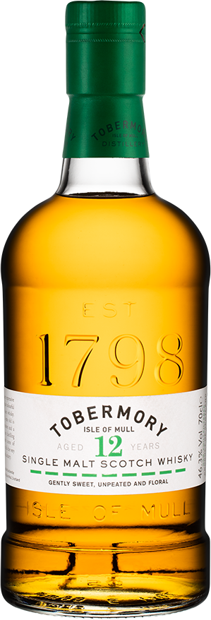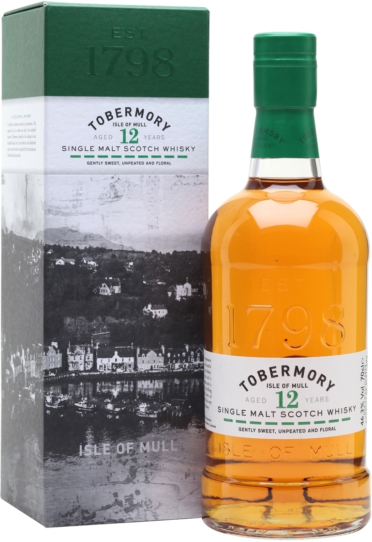 Tobermory, Aged 12 Years — элегантный односолодовый виски. Солод для изготовления виски, в отличие от прежнего способа производства, не коптят торфом, поэтому вкус напитка получается мягким и округлым, а аромат — свежим и легким. Вода, которая используется в производстве, — торфянистая, она придает виски уникальный характер, при этом торфяные ноты ни коим образом не заглушают оттенки фруктов и специй. Созревание "Тобермори" в течение 12 лет проходит в дубовых бочках из-под бурбона.