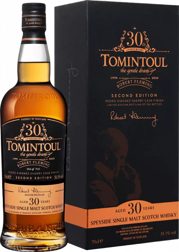 Tomintoul, "Robert Fleming" Second Edition 30 Years Old — второй релиз односолодового шотландского виски, выпущенного в честь 30-летнего юбилея мастера-дистиллятора, Роберта Флеминга. Виски был выдержан в бочках из-под бурбона с финишной выдержкой в бочках из-под хереса Педро Хименес. Бутилирование виски при бочковой крепости 51,1% прошло в феврале 2020 года. Всего было выпущено 700 бутылок этого роскошного виски.