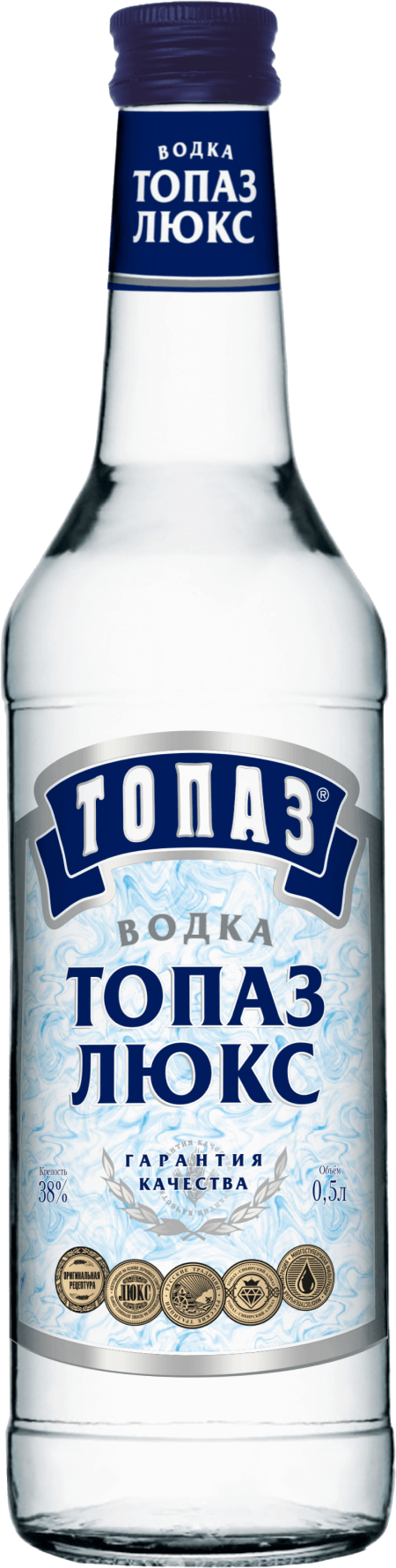 Топаз называют сибирским алмазом. Этому твердому полудрагоценному камню с ярким блеском приписывают лечебные и даже магические свойства. Водка с названием "Топаз" Люкс отличается чистотой и мягкостью вкуса. Ее создают на основе зернового спирта "Люкс", специально подготовленной, прошедшей молекулярную очистку родниковой воды и натурального экстракта ольховых листьев, благодаря которому практически исключается возможность появления похмелья. Изготавливается водка на одноименном заводе в г. Пушкино Московской области.