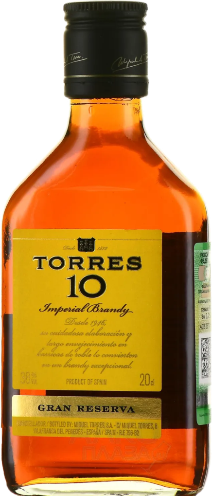 Бренди "Торрес 10 Гран Ресерва" создан из таких испанских сортов винограда, как Парельяда, Макабео и Чарелло. Выдержка производится в традиционном стиле "солера" в бочках из американского дуба. С течением времени элегантные, круглые обертона дуба сливаются в тесной гармонии с сильным пьянящим ароматом спиртных дистиллятов почтенного возраста и рождается "Торрес 10 Гран Ресерва".