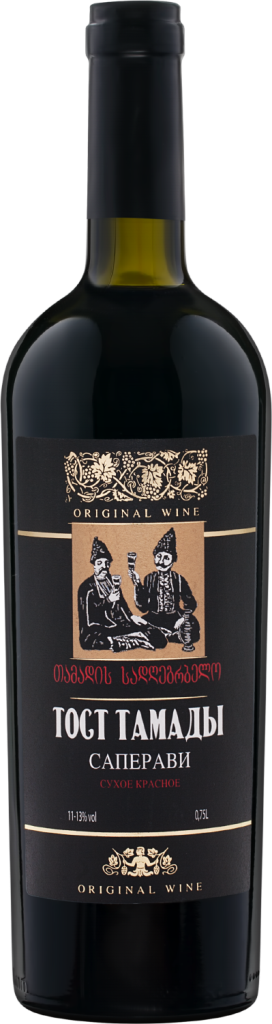 Красное сухое вино "Тост Тамады" Саперави создано из одноименного сорта винограда. Саперави — один из самых важных сортов винограда на Кавказе, получивший широкое распространение и в Европе в XIX веке. Таким образом, Саперави можно считать прародителем многих великих красных вин. Виноград сорта Саперави может выдерживать и долгую засуху, и сибирские морозы. Саперави для этого вина выращивают в Краснодарском крае, где почвенно-климатические условия являются одними из наиболее благоприятных в России для культивирования винограда. После сбора урожая, который осуществляется в момент оптимальной спелости ягод, виноград подвергается традиционной винификации при контролируемой температуре. Вино станет идеальным сопровождением для сытных мясных блюд, хорошо сочетается с жареным и приготовленным на гриле красным мясом, а также твердыми сырами. Хорошо продуманный дизайн этикетки, напоминающий о солнечной и гостеприимной Грузии, а также демократичное соотношение "цена-качество" являются немаловажным достоинством вина "Тост Тамады" Саперави.
