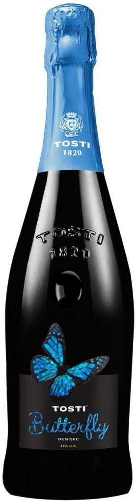 Tosti, Butterfly, Demi-Sec — умеренно сладкое, приятно сухое игристое вино, свежие и легкие пузырьки которого будоражат фантазию. Вино изготавливается из купажа ароматных белых сортов винограда. Собранный урожай мягко прессуется, полученное сусло немедленно охлаждается и ферментируется. Вторичная ферментация в автоклаве начинается после добавления сахарного сиропа. Ее останавливают при достижении давления в 5,5 бар и 7,5% алкоголя путем охлаждения. Вино фильтруется и разливается по бутылкам. Полусухое игристое вино "Баттерфляй" идеально сочетается с закусками и блюдами из рыбы и моллюсков. Также отлично подходит для сладостей и десертов.