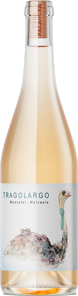 Tragolargo, Moscatel-Malvasia, Alicante - белое сухое вино из сортов винограда Мускат и Мальвазия. Ручной сбор в июле-августе, удаление гребней без дробления; 2 недели ферментации в открытых стальных чанах с природными дрожжами (маленькая порция пье-де-кюв и только для первого чана) при 16-20ºС с ремонтажами только на начальной стадии; общая продолжительность мацерации – 30 дней; малолактическая ферментация в некоторые годы стартует сразу после алкогольной и завершается, пока вино ещё на шапке, а в некоторые проходит уже без неё; после завершения мацерации сорта ассамблируются, вино выдерживается в стали на осадке без батоннажей до февраля и бутилируется без осветления, фильтрации и добавления диоксида серы.