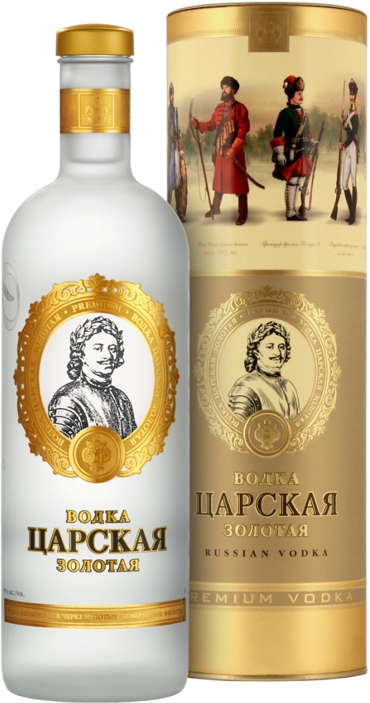 При производстве водки "Царская" применяется уникальная рецептура, воссозданная по архивам времен Петра Великого. Система очистки водки "Царская" Золотая включает 12 ступеней, а также дополнительно проходит через фильтры, прошитые золотыми нитями, за счет чего обогащается ионами 24-х каратного золота и обладает легким омолаживающим эффектом.