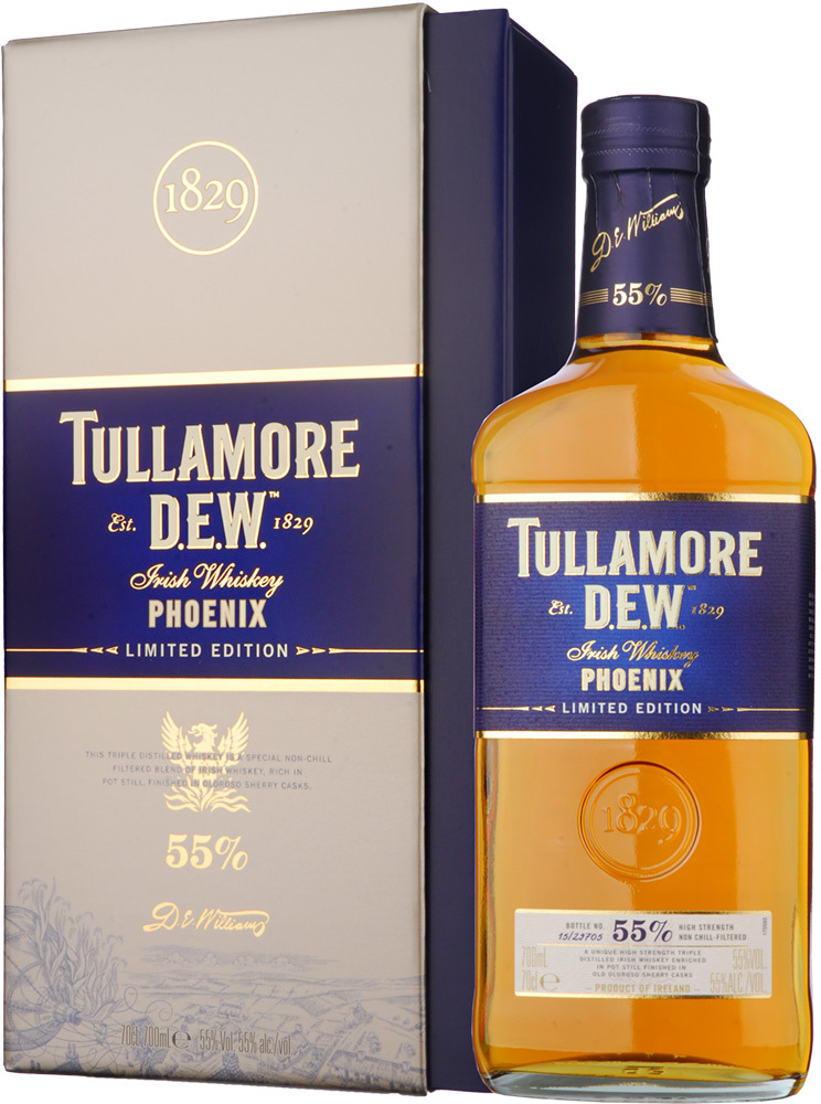 Tullamore Dew, Phoenix — праздничный релиз, выпущенный ограниченным тиражом в 2014 бутылок. В 1785 году жители города Талмор стали свидетелями разрушительного пожара, который почти уничтожил город, но укрепил дух горожан и сплотил их. В последующие десятилетия город был восстановлен, а в 1829 году в городе была построена винокурня Талмор Дью. Феникс является частью герба города Талмор и символом того, как город буквально возродился из пепла. Есть и еще одно иносказательное толкование названия виски как символа стараний Уильяма Гранта по возрождению великолепного виски "Талмор Дью". Выпуск виски был приурочен к запуску нового завода Талмор Дью, с открытием которого компания связывает и открытие новой страницы в истории винокурни.