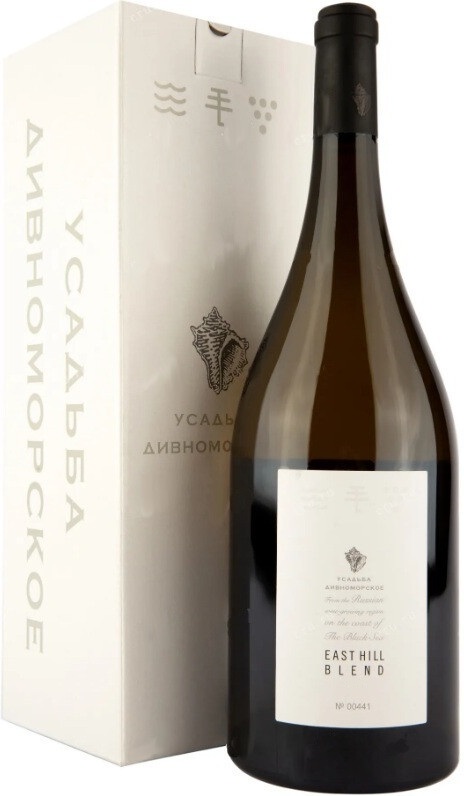Usadba Divnomorskoe, East Hill Blend — белое сухое вино с ярким, элегантным вкусом и ненавязчивым цветочно-фруктовым ароматом. Вино создается из купажа винограда сортов Вионье, Траминер, Совиньон Блан и Рислинг. Виноград культивируется на каменистых склонах, спускающихся к побережью Черного моря, в окружении реликтовых сосен. Такое происхождение виноградников символически отмечено на этикетках вин линейки изображением ракушки рапан. Уникальные геоклиматические условия позволяют ежегодно получать высококачественный урожай и исключительные вина из него, аналогов которым нет на российском рынке. Урожай собирается по достижении ягодами оптимальной спелости. При изготовлении вина каждый сорт ферментируется отдельно в течение 10-14 дней. Выдержка проходит в резервуарах из нержавеющей стали на тонком дрожжевом осадке. После этого вина смешиваются. Перед реализацией вино еще около 6 месяцев дозревает в подвалах винодельни в бутылках.
