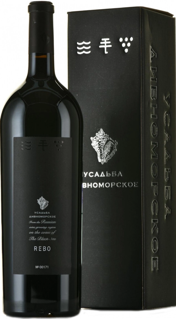 Усадьба Дивноморское, Ребо — красное сухое вино географического наименования из винограда сорта Ребо, который был выведен в Италии в 1948 году путем скрещивания сортов Мерло и Терольдего. От Мерло сорт унаследовал ароматику, а от Терольдего структуру. Виноград культивируется на каменистых склонах, спускающихся к побережью Черного моря, в окружении реликтовых сосен. Уникальные геоклиматические условия позволяют ежегодно получать высококачественный урожай и исключительные вина из него, аналогов которым нет на российском рынке. Ребо собирается с лоз поздно вручную, после чего подвяливается около 2-х месяцев в специальном помещении. Алкогольная ферментация протекает в стальных емкостях при контролируемой температуре. Затем вино выдерживается 36 месяцев в бочках из французского дуба и еще два года в бутылках. "Усадьба Дивноморское" Ребо производится в ограниченном количестве, каждая бутылка пронумерована.