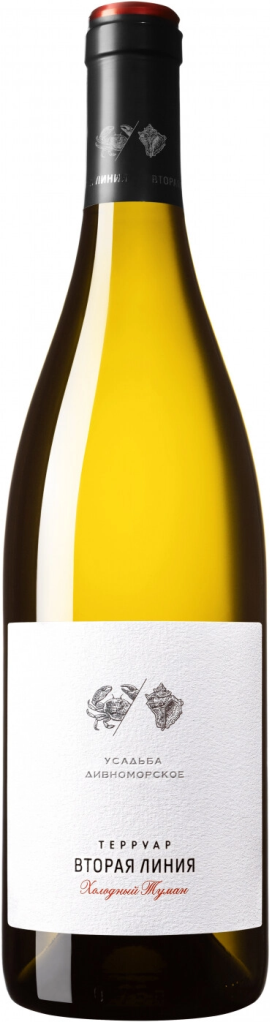 Усадьба Дивноморское, Терруар Вторая Линия, Холодный Туман — белое сухое вино с цветочным ароматом и ярким, освежающим вкусом, которое производится из винограда сортов Рислинг, Совиньон Блан и Манзони. Виноград культивируется на каменистых склонах, спускающихся к побережью Черного моря, в окружении реликтовых сосен. Такое происхождение виноградников символически отмечено на этикетках вин линейки изображением ракушки рапан. Уникальные геоклиматические условия позволяют ежегодно получать высококачественный урожай и исключительные вина из него, аналогов которым нет на российском рынке. Урожай собирается по достижении ягодами оптимальной спелости. Выдержка вина проходит на тонком дрожжевом осадке.