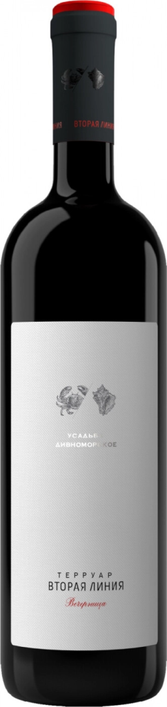 Усадьба Дивноморское, Терруар Вторая Линия, Вечерница — красное сухое вино с гармоничным, свежим вкусом и ярким ароматом, в котором хорошо ощущаются типичные нотки сортов Каберне Совиньон и Сира. По окончании сбора плоды подвергаются прессованию с последующей раздельной ферментацией в стальных резервуарах. Частичная выдержка вина проходит в бочках из французского дуба. Вино превосходно сочетается с мясными горячими блюдами и закусками, а также с сырами.
