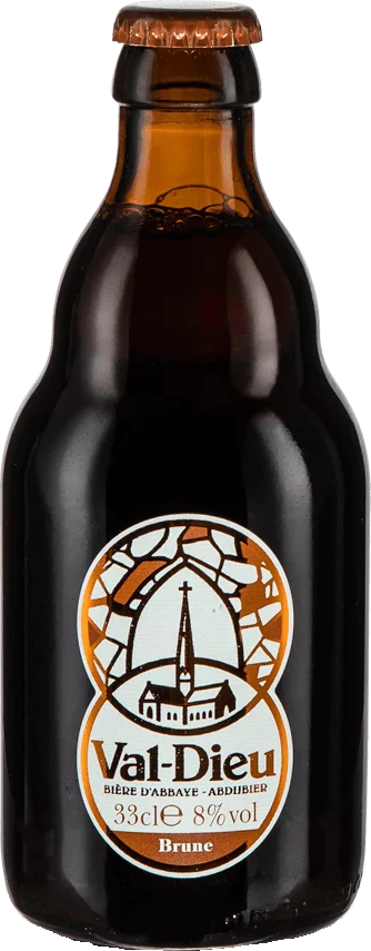Val-Dieu, Brune — великолепное бельгийское пиво темного рубинового цвета с ярко выраженными нотами кофе Мокко и темных фруктов в букете. Оно подходит для употребления как в качестве самостоятельного напитка, так и с различными блюдами и закусками. Рекомендуется употреблять в большом округлом бокале.
