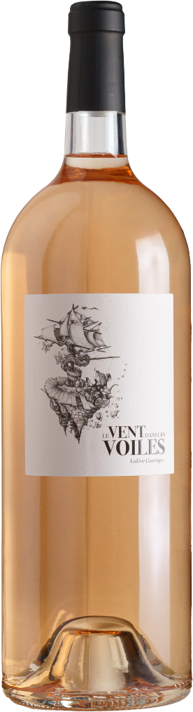 Valerie Courreges, Le Vent Dans le Voiles, Rose — изысканное розовое сухое вино, созданное из винограда сортов Гренаш и Сенсо, взятые в равных частях. Ягоды произрастают на виноградниках с глинисто-известковыми почвами, лозы подвергаются органической переработке. Сбор урожая проводится вручную в момент оптимальной зрелости ягод, на винодельне плоды подвергаются прессованию целыми гроздьями. Ферментация с местными дрожжами проходит в бетонных резервуарах. Выдерживается вино на тонком осадке и бутилируется без оклейки и фильтрации.