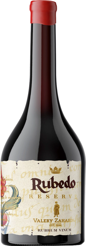 Valery Zaharin, "Rubedo" Reserve — интересное и оригинальное красное сухое вино, название которого происходит от латинского слова, означающего "краснота". Это алхимический термин, которым в XV-XVI веках алхимики обозначали 4-й этап "Алхимического делания". 4-й этап определял состояние достижения просветленного сознания, слияния духа и материи, создания философского камня. Для изготовления вина "Рубедо" Валерий Захарьин использует крымский автохтонный сорт винограда Кефесия и европейский сорт Мерло. Виноград собирается вручную на виноградниках Крымского полуострова. По завершении традиционной винификации в стальных чанах вино выдерживается 12 месяцев в дубовых барриках до бутилирования. Каждая бутылка укупоривается вручную и запечатывается сургучом. Вино выпускается в ограниченном количестве.
