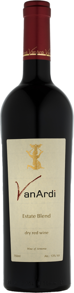 Van Ardi, Estate Blend — прекрасный купаж из автохтонных армянских сортов винограда Арени, Кахет, известного также как Черный Милаг, и Ахтанак. Виноград выращивается на собственных виноградниках компании Ван Арди, расположенных в Аштаракском районе. Из этого высококачественного винограда, созревающего на солнечных холмах, получается захватывающее вино, передающее всю сущность как великолепия армянских сортов винограда, так и подлинного армянского терруара. После сбора урожая, который осуществляется в момент оптимальной спелости ягод, виноград подвергается традиционной винификации при контролируемой температуре, включающей холодную мацерацию. По завершении яблочно-молочного брожения вино выдерживается во французских дубовых бочках не менее 6 месяцев. В результате получается вино, обладающее гармоничным, хорошо структурированным, бархатистым вкусом и легким, приятным ароматом. Красное сухое вино от Ван Арди имеет хороший потенциал хранения.