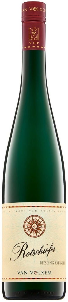 Rotschiefer, Riesling Kabinett — обладающее хорошей питкостью белое полусладкое вино хозяйства Van Volxem. Его полный, сочный вкус отлично утоляет жажду, поэтому им хорошо наслаждаться в чистом виде в качестве аперитива. Вино создается из сорта Рислинг, известного своим утонченным, нежным и в то же время ярким, благодаря цитрусовым нюансам, характером. Винификация осуществляется в стальных емкостях в течение 7 месяцев. Виноград выращивают на богатых железом и красным сланцем почвах, что обеспечивает изысканный вкус. К слову, создатели вина решили "увековечить" тип почвы, на которых произрастают лозы, непосредственно в названии — "Rotschiefer", что в переводе с немецкого означает "красный сланец". Специалисты утверждают, что на пике своей зрелости винтаж 2017 года будет находиться между 2020 и 2030 гг.