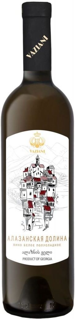 Белое полусладкое вино "Алазанская долина" производят из купажа белых сортов винограда, основным из которых является Ркацители. Весь виноград родом из самого сердца Кахетии, где расположена эта живописная долина, орошаемая реками Алазани и Агричай. Вино пользуется большой популярностью за свой тонкий, изящный вкус, вызывающий легкую эйфорию, как после бокала шампанского.