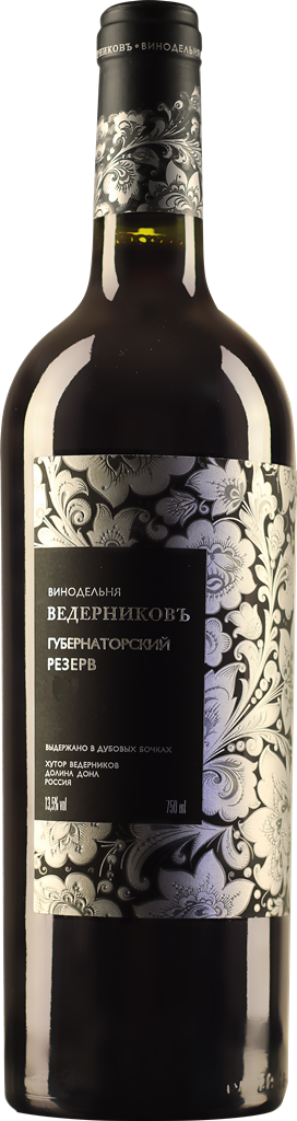 Ведерниковъ, "Губернаторский резерв" Красное — выдержанное красное сухое вино из винограда сортов Красностоп Золотовский, Каберне Совиньон и Цимлянский черный, выращенного в Долине Дона. Вино производят на модернизированных линиях, где используется гребнеотделитель, французская дробилка и криомацератор. Урожай собирают в небольшие ящики и доставляют на винодельню, где сортируют вручную. После ферментации вино выдерживается 9 месяцев в бочках из французского дуба. "Губернаторский резерв" Красное обладает высоким потенциалом хранения.