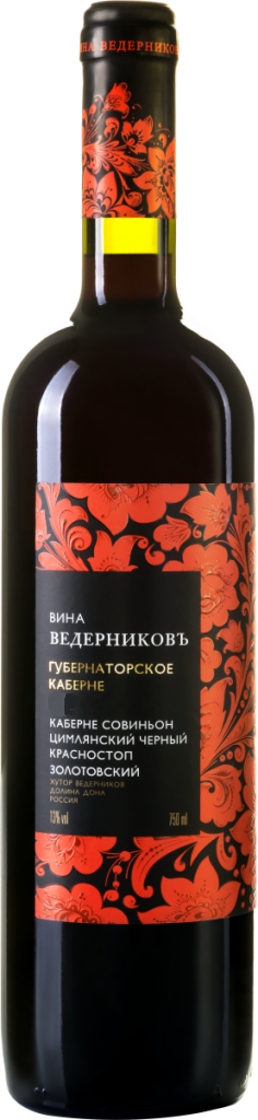 Красное сухое вино "Губернаторское" Каберне от винодельни Ведерниковъ изготовлено из винограда сортов Каберне Совиньон, Цимлянский черный и Красностоп Золотовский. Вино производят на модернизированных линиях, где используется гребнеотделитель, французская дробилка и криомацератор. Урожай собирают в ящики вместимостью 12-14 кг, после чего сортируют вручную. Виноград произрастает на участках со сниженной урожайностью — до 4 000 кг/га, что позволяет повысить концентрацию полезных веществ и обеспечивает оптимальное вызревание ягод.