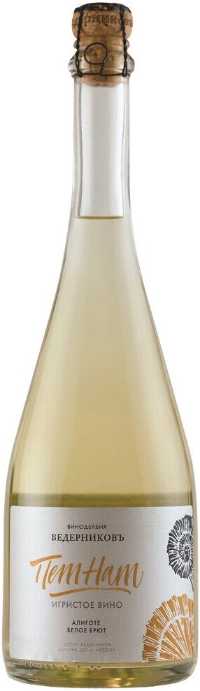 Ведерниковъ, Пет-Нат, Алиготе, Белое Брют — белое игристое вино из классического европейского винограда сорта Алиготе. Пет-Нат (pét-nat или pétillant naturel) — натуральное игристое вино, первые упоминания о котором относятся к XVI веку. Суть метода Пет-Нат/Ансестраль заключается в том, что вино разливается в бутылки не добродившим, после одной ферментации в чанах, которая останавливается путем охлаждения. Винные дрожжи и остаточный сахар запускают вторичное брожение уже в закупоренной бутылке. Поэтому после ее открытия получается игристое вино, а не тихое. Пет-Нат производится без оклейки и фильтрации. Метод Ансестраль подразумевает большое количество ручного труда, и Пет-Нат от "Винодельни Ведерниковъ" соответствует этому принципу.
