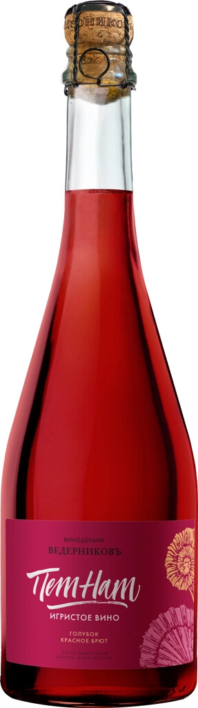 Ведерниковъ, Пет-Нат, Голубок, Красное Брют — экстравагантный Брют, изготовленный из автохтонного винограда сорта Голубок, который идеально подойдет тем, кто всегда ищет необычное и новое. Пет-Нат (pét-nat или pétillant naturel) — натуральное игристое вино, первые упоминания о котором относятся к XVI веку. Суть метода Пет-Нат/Ансестраль заключается в том, что вино разливается в бутылки не добродившим, после одной ферментации в чанах, которая останавливается путем охлаждения. Винные дрожжи и остаточный сахар запускают вторичное брожение уже в закупоренной бутылке. Поэтому после ее открытия получается игристое вино, а не тихое. Пет-Нат производится без оклейки и фильтрации. Метод Ансестраль подразумевает большое количество ручного труда, и Пет-Нат от "Винодельни Ведерниковъ" соответствует этому принципу.