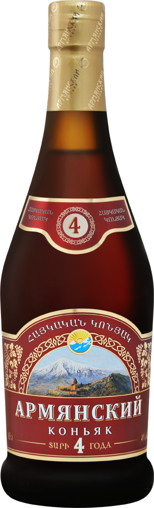Элегантный коньяк Армянский Коньяк 4-летний изготовлен по традиционному армянскому рецепту и обладает характерным, классическим вкусом коньяков Араратской Долины. Выдержка коньяка проводится в дубовых бочках и длится 4 года. Коньяк рекомендуется употреблять в чистом виде, а также сочетать с мясными деликатесами, рыбой, сырами, десертами и спелыми абрикосами, добавлять в коктейли или кофе.