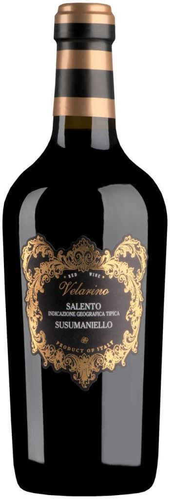 Красное сухое вино Velarino, Susumaniello, Salento создано из винограда одноименного сорта, выращенного на виноградниках в Апулии. Климат на участках теплый и умеренный, со значительным объемом осадков в течение года. Летом приходят африканские ветра, приносят с собой быстрое и ощутимое повышение дневных температур, а также значительный температурный контраст дня и ночи. Урожай чуть переспелых ягод собирают во вторую декаду сентября. Виноград сортируют, очищают от гребней, мягко прессуют и отправляют на 10-дневную алкогольную ферментацию при контролируемой температуре 24-26°С. Во время ферментации сусло перемешивается вручную. Малолактическая ферментация проходит в стальных танкерах. Созревание 70% вина проходит в бочках из французского и американского дуба. Остальное вино выдерживается в стальных танкерах. Выдержка длится 6-8 месяцев.