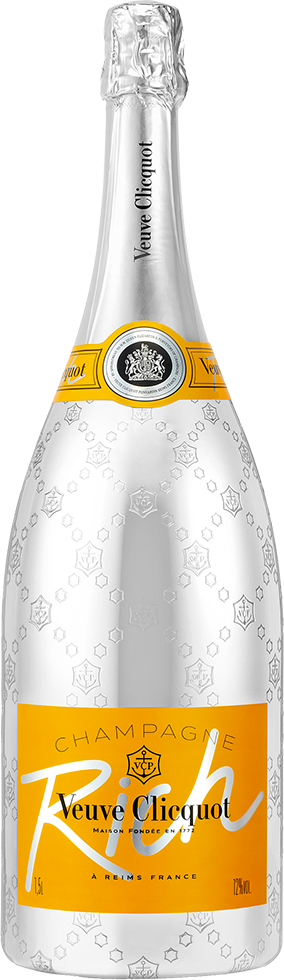 В шампанском Veuve Clicquot, "Rich" White фруктовая нота выведена на совершенно новый уровень. Виноград сорта Пино Нуар (40-45%) в сочетании с высоким содержанием сахара получает новые краски, значительная доля Пино Менье (30-35%) придает вкусу свежесть, яркую фруктовость и изысканность, а небольшая часть Шардоне (20-25%) наполняет его элегантностью. Выдержка шампанского составляет 30 месяцев.