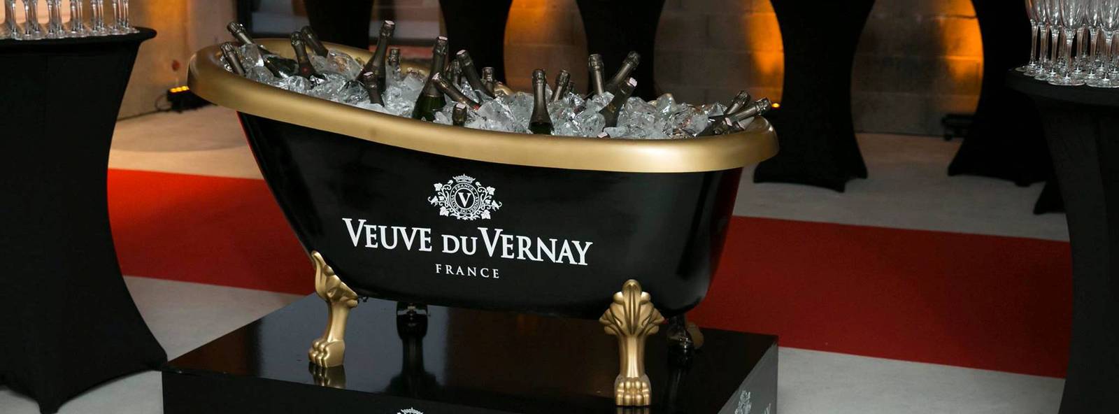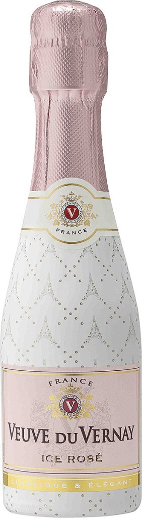 Veuve du Vernay, Ice Rose — изысканное розовое полусладкое игристое вино, созданное из сорта винограда — Темпранильо. Оно привлекает округлым, гармоничным вкусом и ароматом с фруктово-цветочными акцентами. Игристое вино принято подавать в паре с морепродуктами, различными десертами и фруктами.