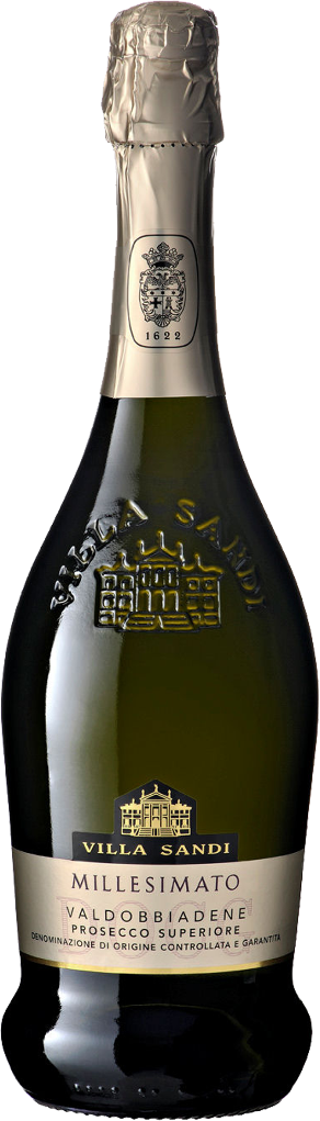 Villa Sandi, Valdobbiadene Prosecco Superiore, Millesimato Brut — белое игристое вино, созданное из винограда сорта Глера. Ягоды произрастают на виноградниках хозяйства Вилла Санди в зоне Valdobbiadene DOCG. Это холмистая местность моренного происхождения с известковыми почвами с примесью мергеля, а в некоторых случаях и известково-глинистых.