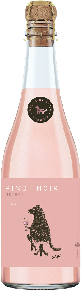 Villa di Alma, Pinot Noir, Petnat — яркий, сочный, освежающий игристый Пино Нуар коль фондо! Виноград для создания этого игристого вина выращивается на сертифицированных виноградниках между селами Растущее и Плодовое Бахчисарайского района Крыма. Посадки с лозами Пино Нуар занимают 3,5 га. Рельеф долины характеризуется разнообразием, здесь низменности чередуются с холмами. Виноградники расположены на высоте 100-250 метров над уровнем моря и имеют различную экcпозицию. Лозы культивируются без применения пестицидов и синтетических удобрений.