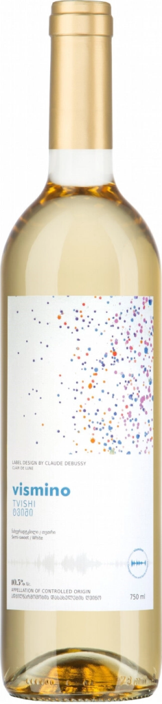 "Vismino" Tvishi — белое полусладкое вино из винограда сорта Цоликаури. На этикетке "изображена" композиция Клода Дебюсси "Лунный свет".