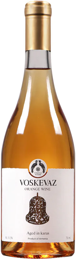 Voskevaz, Orange — роскошное оранжевое вино, созданное из местного армянского винограда сорта Воскеат, который олицетворяет богатое винодельческое наследие Армении. Ягоды произрастают на 60-летних лоз, укорененных в вулканических почвах региона Арагацотн на высоте 1000 метров над уровнем моря. Сбор урожая проводится вручную в момент оптимальной спелости, на винодельне плоды подвергаются сортировке и ферментации в традиционных карасах. Вино проходит длительную выдержку в амфорах, а затем переливается в бочки из армянского дуба для дальнейшего созревания.