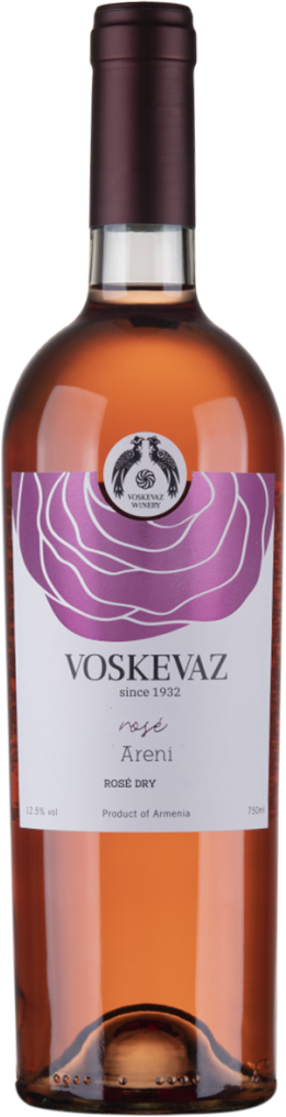 Voskevaz, Vintage, Rose - яркое розовое сухое вино, в производстве которого используют автохтонный виноград сорта Арени, выращиваемый на виноградниках хозяйства в Арагацотнском регионе. Урожай собирают исключительно вручную. При изготовлении вина используют старинную технологию. Краткая мацерация обеспечивает вину красивый розовый оттенок. Вино выдерживается непродолжительное время в емкостях из нержавеющей стали.