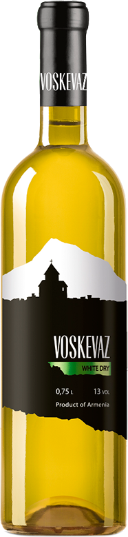 Белое сухое вино "Воскеваз" изготовлено из двух старинных сортов винограда — Кангун и Воскеат, выращенных в Армении. Сбор урожая осуществлялся в последних числах сентября и первых числах октября. Выдержка вина проводилась в течение 6 месяцев в чанах из нержавеющей стали, в результате которой появилось освежающее сухое вино с потрясающе красивым соломенным цветом и деликатным ароматом с нотами белых цветов и цитрусовых.