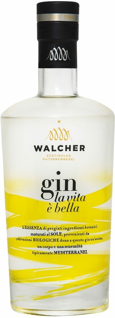 Walcher, "La Vita e Bella" — дистиллированный сухой джин, полученный из 24 органических растений Средиземноморья. В производстве используются ягоды дикого можжевельника с горных пастбищ Южного Тироля, свежий цитрон и мандарин из Сицилии, семена кориандра, корень имбиря, валерианы, дягиля и аира, розмарин, тмин, семена кардамона, плоды шиповника, цедра апельсина и лимона, цветы лаванды, бузины и апельсина, лепестки роз, ромашка, мелисса, мята перечная, полынь и другие компоненты. Особое внимание стоит уделить, конечно, сицилийским цитрусовым фруктам. Именно они, отличающиеся богатым содержанием эфирных масел, придают "Ла Вита э Белла" шарм и формируют уникальный характер. Все растительные ингредиенты собираются вручную. Однако, не только травы, коренья, специи и фрукты делают "Ла Вита э Белла" особенным джином. Большая заслуга принадлежит также и высококачественному пшеничному спирту и натуральной родниковой воде из самого сердца Доломитовых Альп. Собственные технологии компании Walcher и ремесленная точность гарантируют исключительное качество джина. А инновационный рецепт, основанный на идеальном сочетании творчества и многолетнего опыта, обещают удивительное гастрономическое, по-летнему свежее и цитрусово бодрящее приключение.