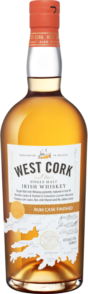 West Cork, Rum Cask, Single Malt — односолодовый ирландский виски, который после тройной дистилляции был выдержан сначала в бочках из-под бурбона первого использования, а затем — в небольших бочках из-под рома Consorcio Licorero Nacional. Бутилирование проводится без холодной фильтрации. Виски употребляется в чистом виде или с добавлением льда.