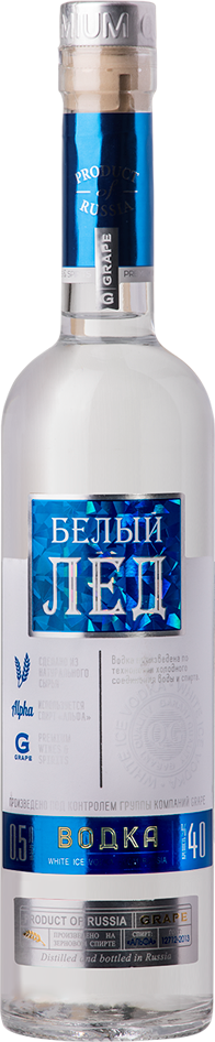 Белый Лёд — деликатная и мягкая водка, созданная по уникальной технологии холодного соединения воды и спирта. Водка изготавливается на основе спирта класса "Альфа" с добавлением исправленной питьевой воды и фруктозы. При производстве спирта используется исключительно натуральное сырье. Водка обладает чистым ароматом и утонченным вкусом, хорошо сочетается со всевозможными сытными блюдами русской или украинской кухни.