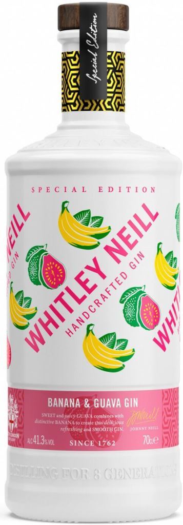 Whitley Neill, Banana & Guava — сухой джин ручной работы исключительного качества, в производстве которого используются плоды гуавы и банана, собранные в Шотландии. Джин привлекает ярким, свежим вкусом и ароматом с характерными оттенками банана и гуавы, гармонично дополненными нюансами можжевельника, кориандра и трав. Дистилляция джина производится в столетнем медном перегонном кубе.