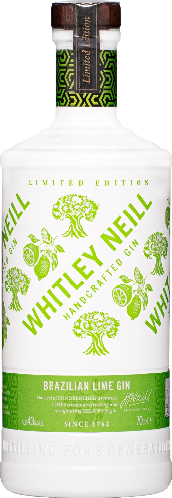 Whitley Neill Brazilian Lime — сухой крафтовый джин лимитированной серии, на создание которого Джимми Нейлла вдохновили бесстрашные путешествия по Южной Америке в 90-х гг. Игристые напитки и вкусная еда в сопровождении сочных долек бразильского лайма, наполненного солнечным светом, привели к созданию уникального джина. Пикантные нотки лайма привносят в напиток свежесть и позволяют наслаждаться напитком как самостоятельно, так и в составе коктейлей, в особенности в сочетании с бразильской капириньей.