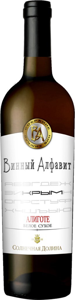 Винный Алфавит, Алиготе — белое сухое вино, изготовленное из винограда, произрастающего на виноградниках крымского полуострова. Виноградники расположены в особой микрозоне полуострова, сформированной цепью гор, массивом древнего вулкана Карадаг и скалистым мысом Меганом. Окружающие долину горы ограничивают влияние Черного моря, что способствует формированию очень жаркого и засушливого микроклимата. На смену умеренно жаркому и засушливому лету приходит очень мягкая зима. Высокие температуры, незначительное количество осадков, сильные жаркие ветра усложняют условия для культивирования винограда. Однако, именно суровый полупустынный микроклимат дает возможность создавать такие яркие и запоминающиеся вина. Виноградные лозы выращиваются на песчано-кремниевых почвах. Урожай собирается по достижении ягодами оптимальной спелости. Процесс винификации протекает по традиционному методу. "Винный Алфавит" Алиготе отличается превосходным соотношением "цена-качество".