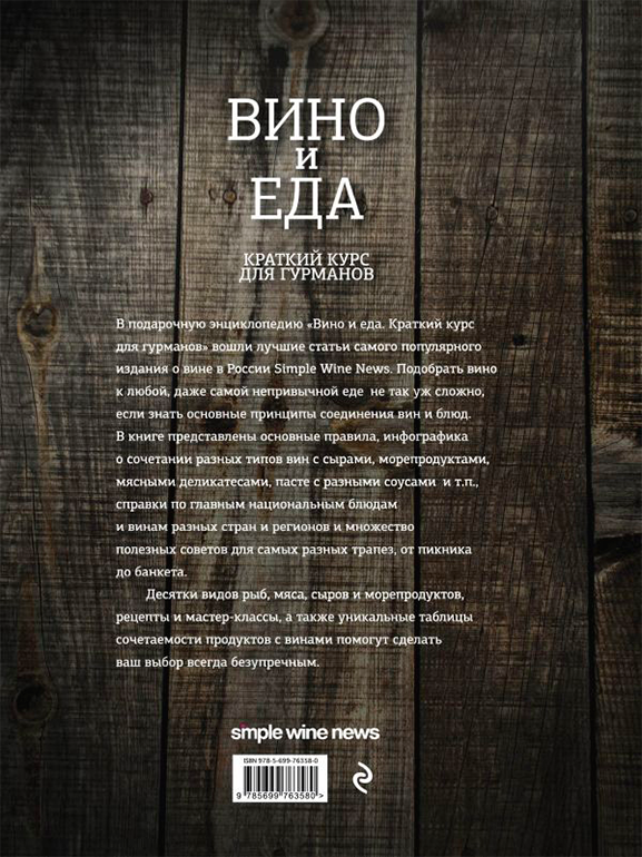 В подарочную энциклопедию «Вино и еда. Краткий курс для гурманов» вошли лучшие статьи самого популярного журнала о вине в России "Simple Wine News". Подобрать вино к любой, даже самой непривычной еде не так уж сложно, если знать основные принципы соединения вин и блюд.
