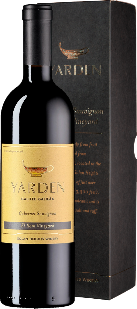 Golan Heights, "Yarden" Cabernet Sauvignon El Rom Vineyard — полнотелое красное сухое кошерное вино, демонстрирующее многогранный аромат и глубокий, бархатистый вкус, изобилующий оттенками спелых красных фруктов и ягод. Виноградный сорт Каберне Совиньон, используемый для создания вина, выращивается на винограднике Эль Ром, расположенном на высоте 1000–1100 метров на северных Голанских высотах. Виноградные лозы были посажены в 1983 году. После традиционного для красного вина метода винификации вино выдерживается в бочках из французского дуба в течение 18 месяцев. "Ярден" Каберне Совиньон Эль Ром Виньярд приятно уже в молодом возрасте, но с течением времени напиток будет продолжать улучшаться в бутылке и останется в отличном состоянии в течение десятилетия или более.
