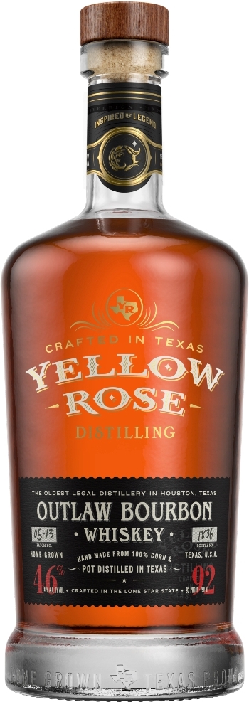 Yellow Rose, Outlaw Bourbon — верный своему названию, этот напиток нарушает все традиционные законы о бурбоне. Изготовлен из 100% желтой техасской кукурузы и выдержан в небольших бочках из американского дуба в Хьюстоне. Перепады температуры в 15-20°С в этой части Техаса придают бурбону уникальные характеристики. Виски является отличным дижестивом, гармонично сочетается со льдом, сигарой или кофе.