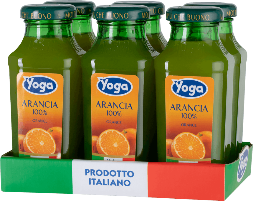 Классическая линейка натуральных 100% восстановленных соков премиум-класса без содержания сахара под маркой Yoga представлена апельсиновым, яблочным, грейпфрутовым, ананасовым и тропическим вкусами. Соки производятся из фруктов и овощей, выращенных на территории Италии (за исключением экзотических, поставляющихся из Испании и других стран). Все продукты тщательно тестируют и обрабатывают, контроль качества осуществляется на 50 этапах производства.