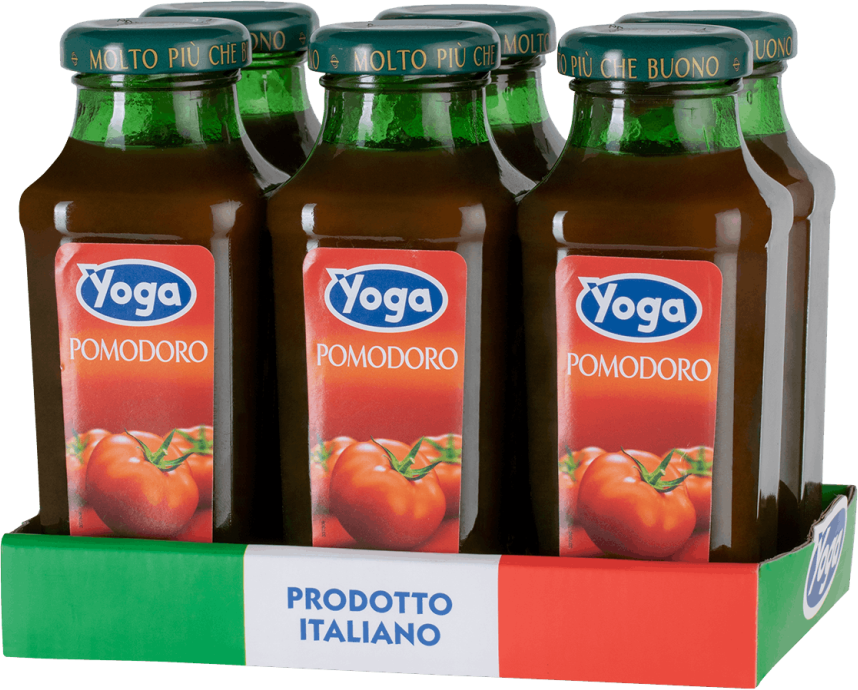 Классическая линейка натуральных 100% восстановленных соков премиум-класса без содержания сахара под маркой "Yoga" представлена апельсиновым, яблочным, грейпфрутовым, ананасовым и тропическим вкусами. Соки производятся из фруктов и овощей, выращенных на территории Италии (за исключением экзотических, поставляющихся из Испании и других стран). Все продукты тщательно тестируют и обрабатывают, контроль качества осуществляется на 50 этапах производства.